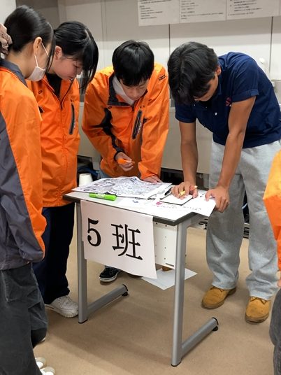 グループワークでは、被災を想定した出題があり、それに班(グループ)で向き合います。