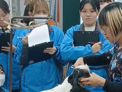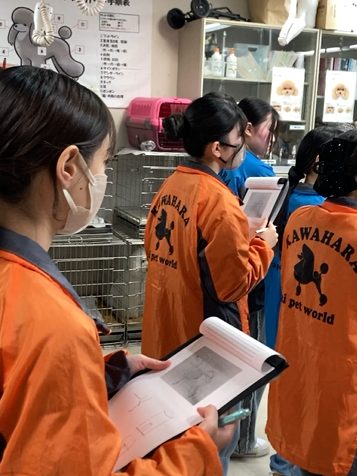 骨格や毛色の違いの特徴とお手入れの解説になると、学生たちは文字だけでなく絵を描くなどして熱心にメモをしていました。