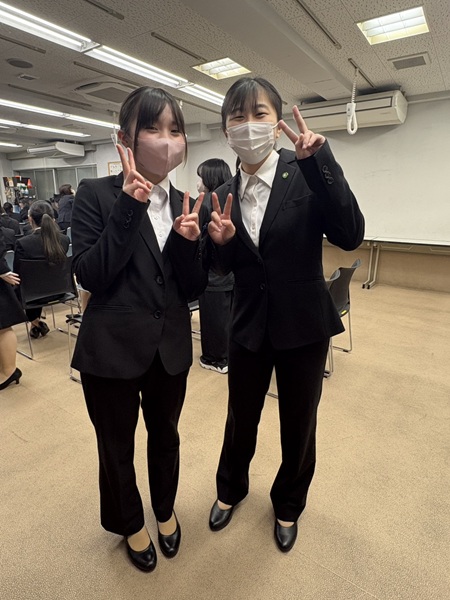 先日、就職活動に向けてのスーツセミナーがありました。 はるやま伊予松前店様、はるやま松山北店様にご協力いただき一人一人スーツの着こなし具合を見てもらいました。 就職活動に向けて今日習ったことを活かしたいと思います。