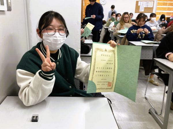 さらに、愛玩動物飼養管理士2級試験を受験した1年生の中から選ばれた成績優秀者の表彰も行われました。