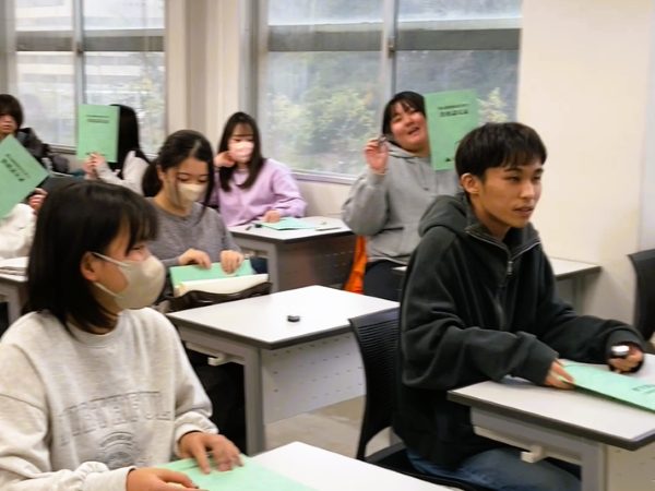 (写真は愛玩動物飼養管理士2級の資格認定証とピンバッジを受け取る1年生たち)